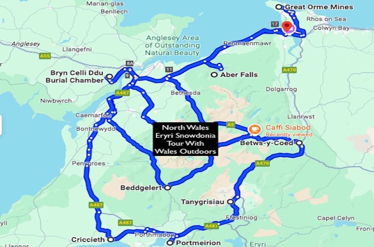 From the coastal charms of Conwy and Llandudno to the dramatic mountain landscapes around Ogwen and Betws-y-Coed, each stop reveals another side of Snowdonia’s beauty. Explore ancient copper mines and castles, stroll to waterfalls and mountain lakes, and uncover the world of slate miners and Neolithic tombs. Highlights include Caernarfon Castle, the Great Orme, Portmeirion’s Italianate village, and the legendary Gelert’s Grave in Beddgelert.